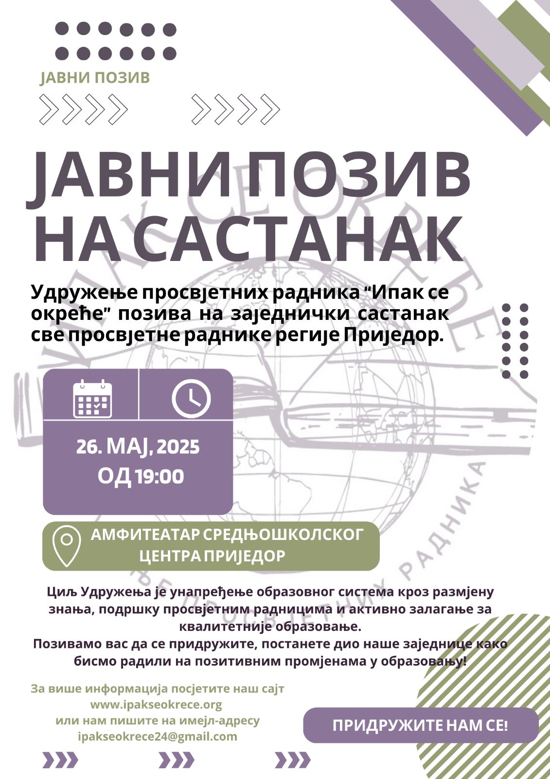 Позивамо просвјетне раднике приједорске регије да се одазову на овај састанак, јер сматрамо